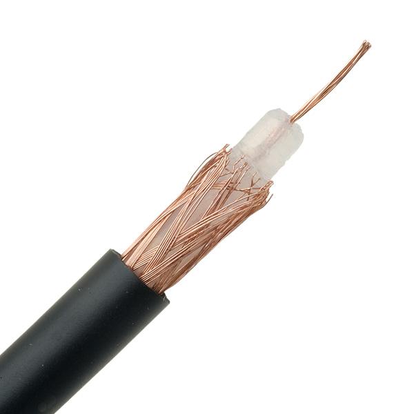 O Cabo coaxial RG 58 50 ohms tem condutor interno de corda de cobre estanhado de 0,90 mm, dielétrico de polietileno sólido de 2,90 mm e condutor externo de fita de poliéster de 2,95 mm.